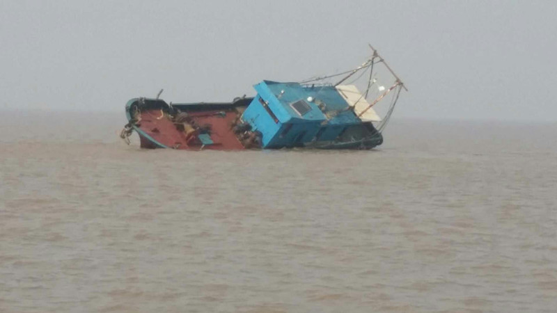 11月21日0850时,灌云海巡执法大队接连云港海上搜救中心通知:在灌河口外,一渔船骑上开山岛堤坝,因海上风大浪急,船舶有倾覆危险,遇险人员随时存在生命危险。