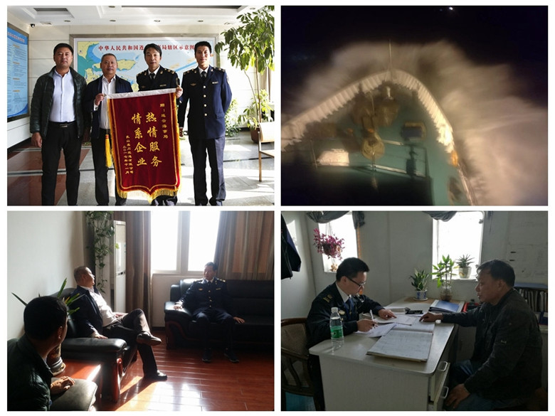 11月1日上午,乳山鑫川航运公司一行两人到访连云海事处,对连云海事处为该公司所属船舶“鑫川9”轮的快速救助表示感谢并赠送锦旗。