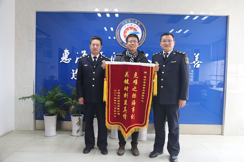 11月30日上午,日照宝舸海运有限公司委托其代理连云港千舟船舶服务有限公司来到连云港海上搜救中心送上一面印有“危难之际海事到 关键时刻显身手”的锦旗,为我中心处置“宝舸1”轮船员伤病险情时的认真履职真情服务表示感谢,并对值班人员海上应急处置能力和强烈的责任心点赞。
