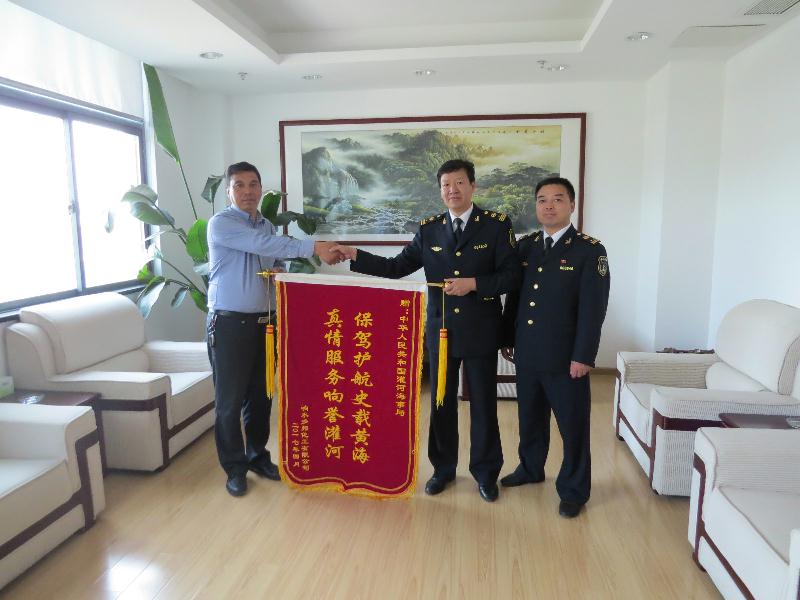 4月17日下午,响水多邦化工有限公司总经理来到灌河海事局,向灌河局赠送了一面书有“真情服务响誉灌河,保驾护航史载黄海”的锦旗,对灌河海事局为该公司提供的热情、周到的服务表达谢意。