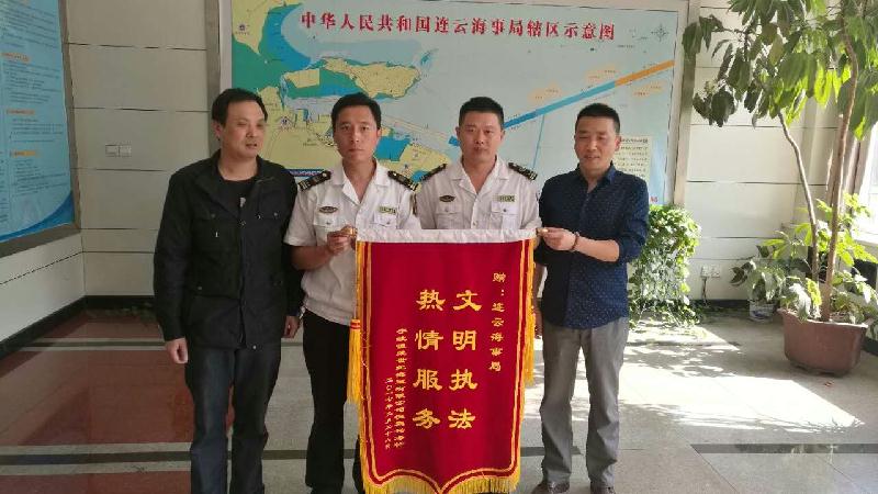 9月28日上午,辖区定线班轮“恒荣兴海”轮船长一行来到连云海事局赠送一面印有“文明执法热情服务”的锦旗,为连云海事局长期坚持的热情服务和文明执法点赞。